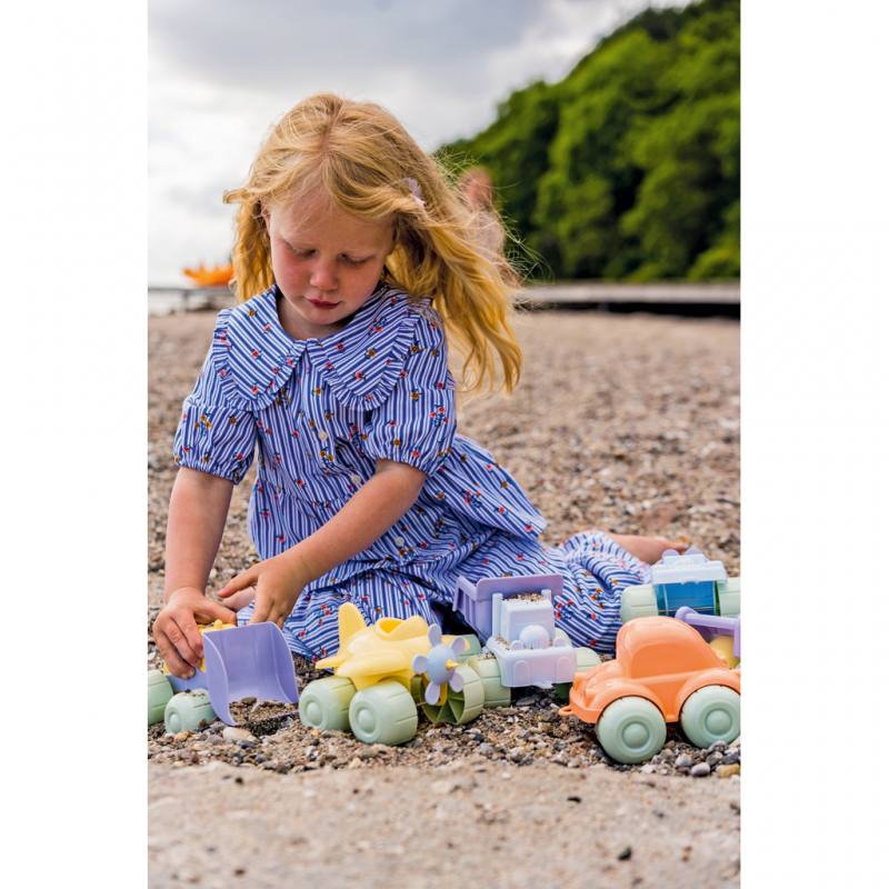 Die Autos bestehen aus recyceltem Kunststoff. Beim Schieben, Lenken und Platzieren werden Feinmotorik und Auge-Hand-Koordination ganz nebenbei gefördert. Die robusten Fahrzeuge eignen sich für freies Spiel, erste Rollenspiele und gemeinsames Entdecken.