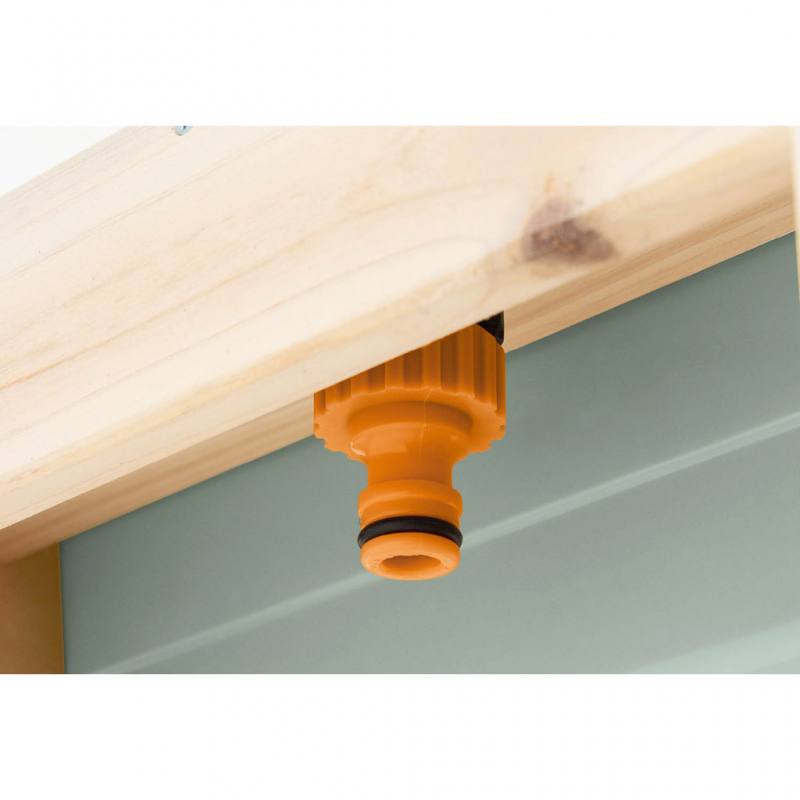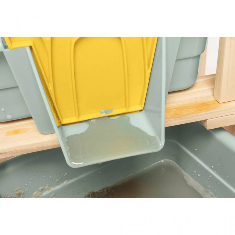 Besonders hervorzuheben sind die liebevoll gestalteten Schleusentore in Frosch-Form, mit denen die kleinen Kapitäne den Wasserlauf zwischen den Tischen selbst regulieren können. Jede Ebene ist mit einer herausnehmbaren Kunststoffwanne ausgestattet, die ein Fassungsvermögen von 4 l bietet. Dank des integrierten Wasserhahns mit Schlauchanschluss lässt sich die Wasserzufuhr kinderleicht sicherstellen. Dies fördert nicht nur die Fantasie, sondern auch die sensorische Entwicklung und die Feinmotorik beim Matschen und Bauen.