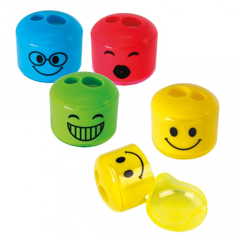 Der Spitzer mit Dose passt auch prima in die bunte Bastelbox des Kindergartens, die heimische Federmappe oder auf dem Schreibtisch im Büro – so startet jeder Tag mit einem freundlichen Lächeln oder einem lustigen Gesicht. Die Spitzerdose ist in den Farben Pink, Gelb, Grün und Blau erhältlich. Jede Farbe zeigt ein anderes Gesicht, vom lieben Lächeln über ein breites Grinsen bis hin zum vollmundigen Schmatzer. Die Lieferung des Doppelspitzers erfolgt farbig sortiert.