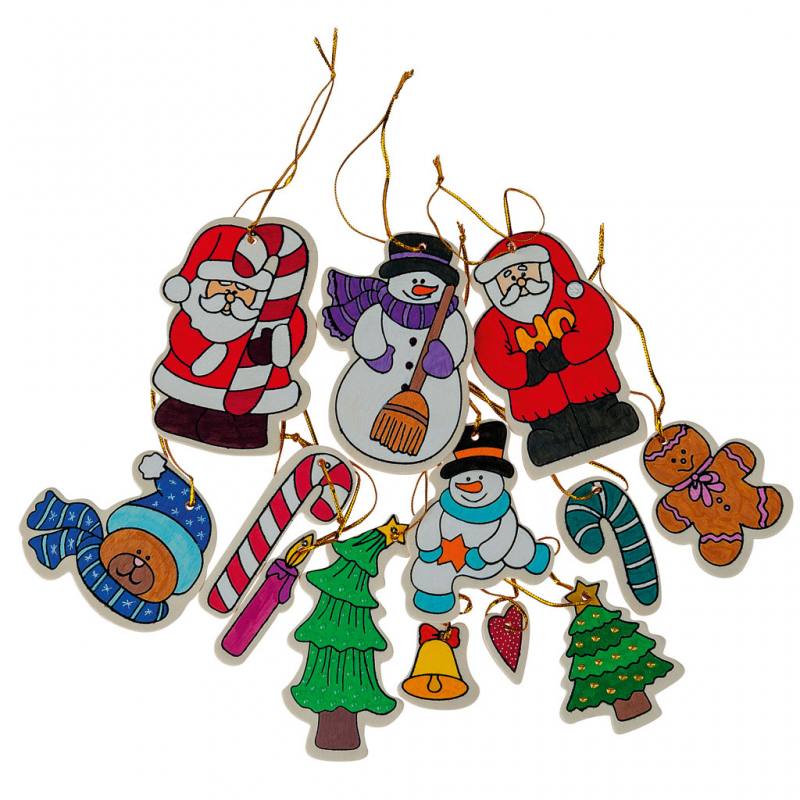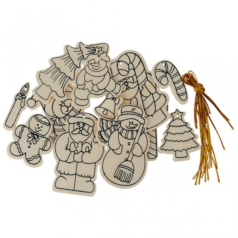 - 13 Blanko-Holzanhänger mit Weihnachtsmotiven