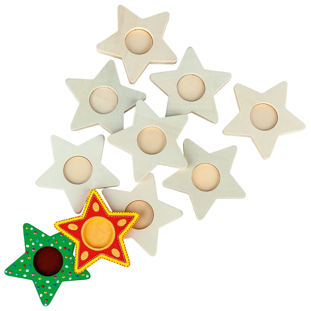 Der Teelichthalter Stern ist einzeln oder im praktischen 3er- oder 10er-Set erhältlich – ideal für Gruppenarbeiten oder als Bastelangebot in der Vorweihnachtszeit. Das robuste Naturholz lässt sich mit allen gängigen Bastelmaterialien gut bearbeiten und vermittelt den Kindern ein Gefühl für natürliche Werkstoffe.