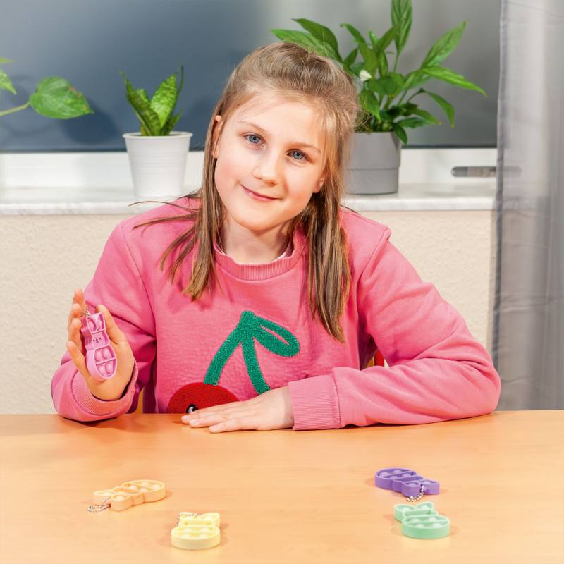 Das Bubble Spielzeug besteht aus weichem, langlebigem Silikon und ist besonders robust und kinderfreundlich. Durch das Drücken der einzelnen Blasen wird nicht nur Stress abgebaut, sondern auch die Konzentration gefördert. Ganz nebenbei trainieren Kinder ihre Fingerbeweglichkeit und beschäftigen sich ruhig und selbstständig. Dank der praktischen Anhängerfunktion lassen sich die Anti-Stress-Häschen Plopp up ganz einfach an Schulranzen oder Schlüsselbunden befestigen. So ist das Plopp Spielzeug jederzeit griffbereit.