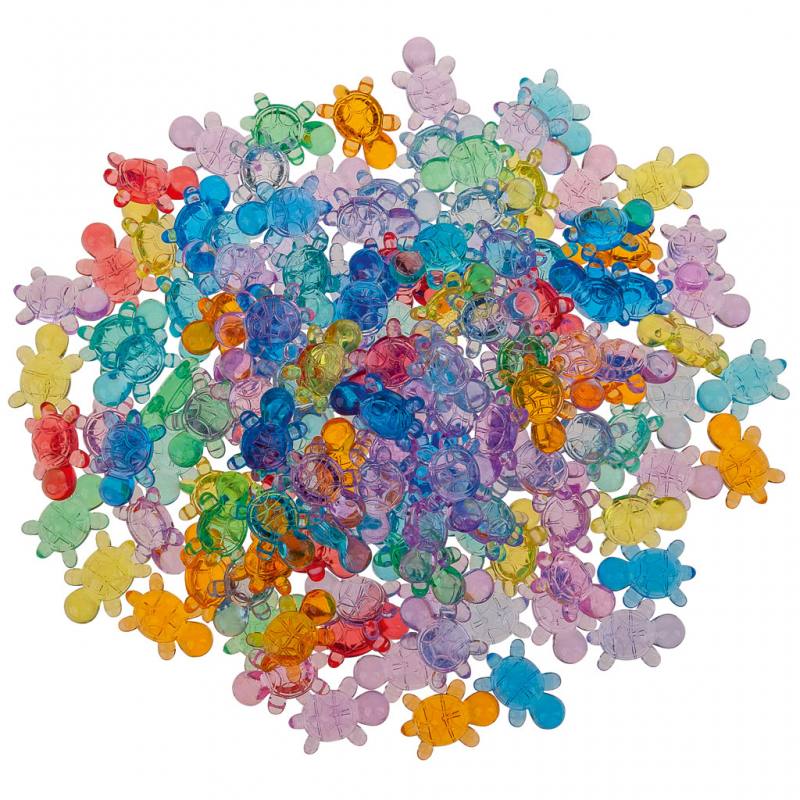 Die farbenfrohen kleinen Deko Schildkröten bringen Freude in jedes Bastelprojekt. Das Set enthält etwa 130 kleine Schildkröten aus robustem Kunststoff (PS), in verschiedenen Farben. Mit einer Größe von 36 x 24 x 11 mm eignen sie sich ideal zum individuellen Dekorieren, Spielen oder Gestalten.