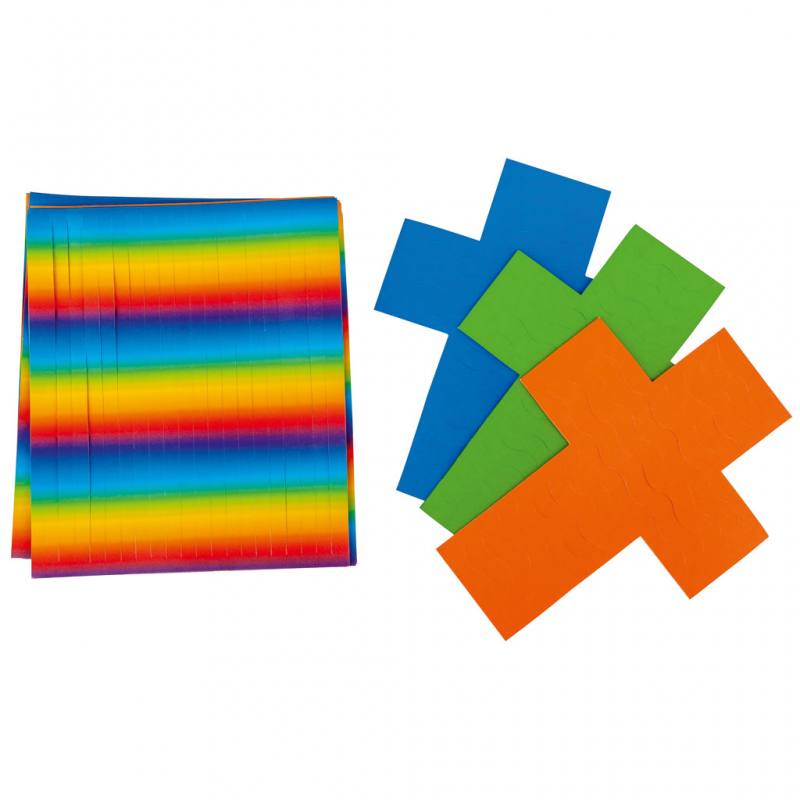 Jede Kreuz-Deko besteht aus stabilem Papier und hat eine Größe von 25 x 18 cm. Mit den beiliegenden Flechtvorlagen und farbigen Streifen lassen sich leicht wunderschöne Muster gestalten. So entstehen einzigartige Dekorationen, die nicht nur schön aussehen, sondern auch zum Nachdenken und Gestalten anregen.