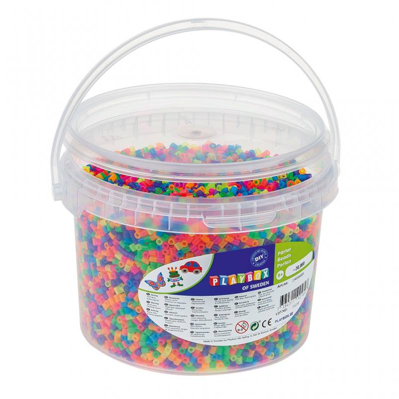 - Maße: Perlen Ø 5 mm, Höhe 5 mm, Eimer Ø 20 cm, Höhe 14 cm