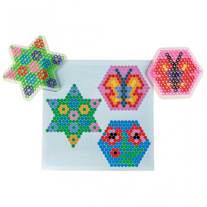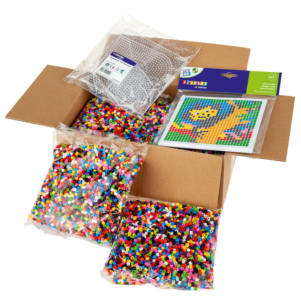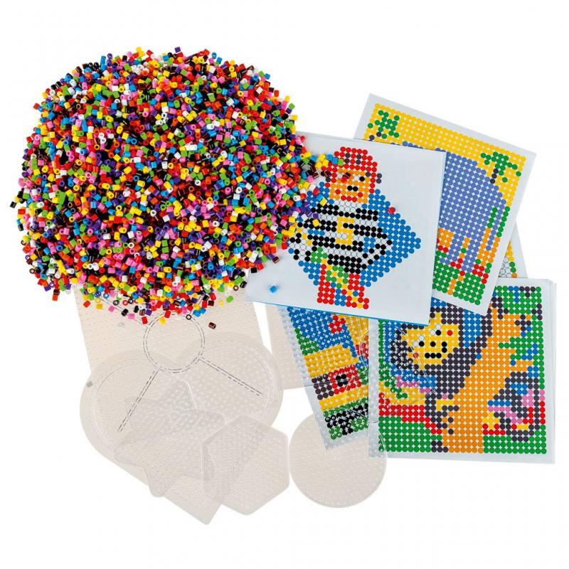 Im Set enthalten 28.000 Perlen gemischt in 10 Farben inkl. Motivvorlagen (Art.-Nr. W-91506) und transparenten Steckplatten (Art.-Nr. W-91504).
