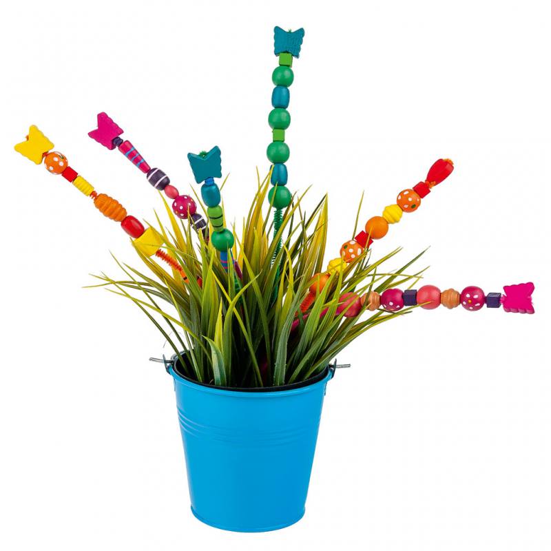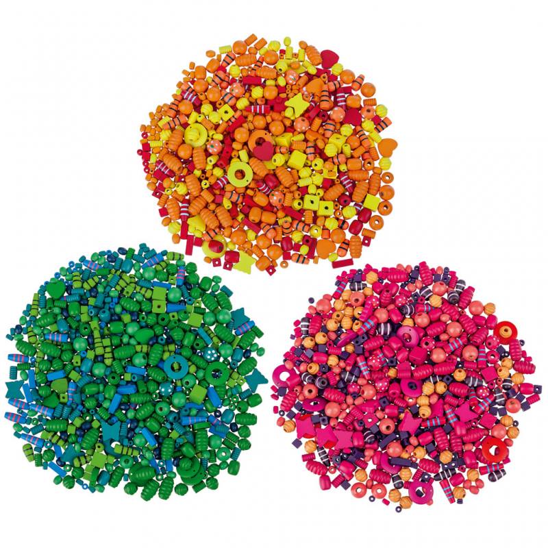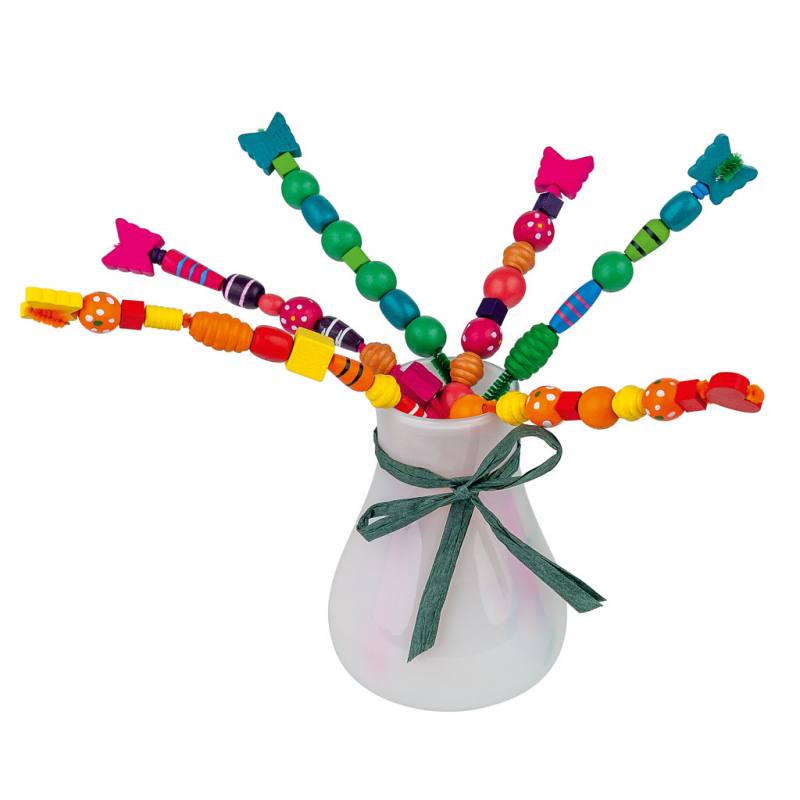 Ob Armbänder, Ketten oder Schlüsselanhänger. Die Holzperlen zum Auffädeln lassen sich vielseitig einsetzen. Sie fördern spielerisch die Feinmotorik und die Konzentration. Gleichzeitig regen sie die Kreativität an und laden zum freien Gestalten ein.