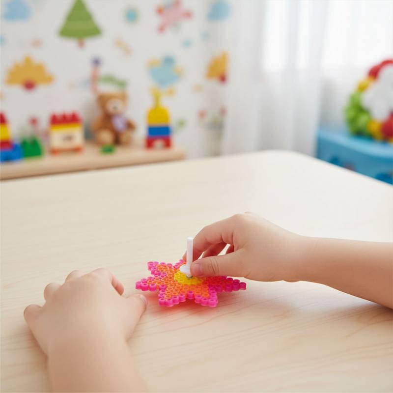 Neben dem gestalterischen Aspekt fördern die Kreiselsticks für Midi-Bügelperlen auch die Feinmotorik, das Verständnis für Symmetrie und Bewegung sowie die Konzentration. Sie laden dazu ein, eigene Muster zu erfinden, Farbverläufe zu testen und Unterschiede im Drehverhalten zu entdecken – ein kreativer und lehrreicher Bastelspaß, der begeistert.