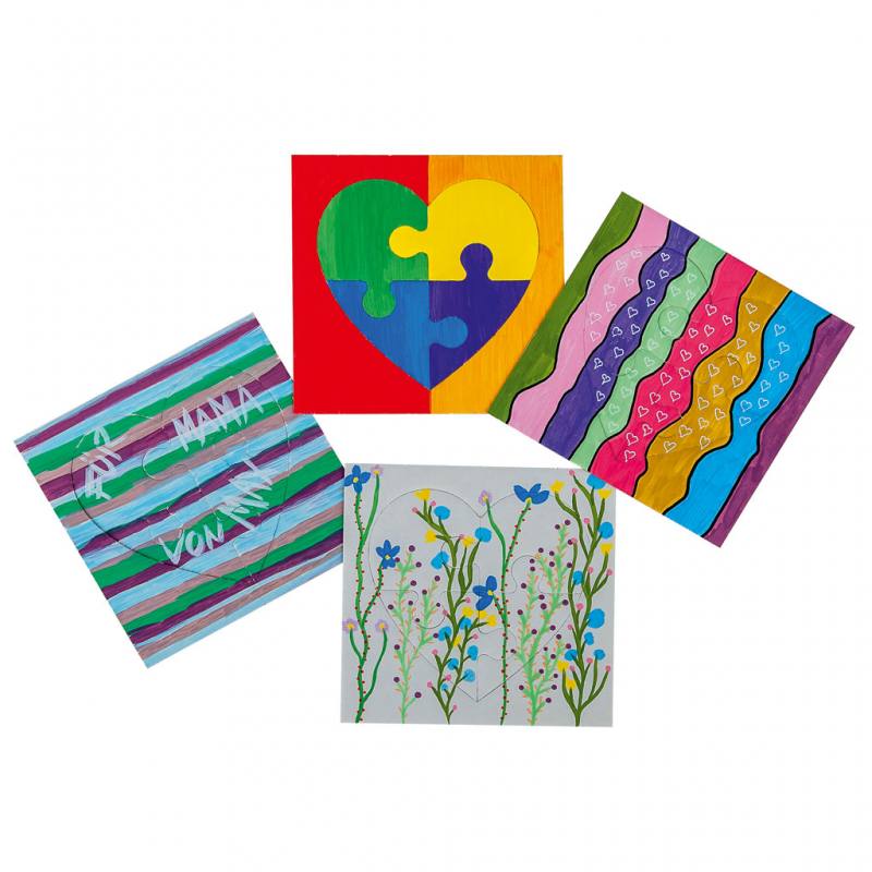 Das Herz-Puzzle ist eine liebevolle Bastelidee, die Kreativität, Feinmotorik und persönliche Ausdruckskraft fördert. Im Set enthalten sind 12 Puzzles aus stabilem Karton, jeweils bestehend aus vier Teilen in einem herzförmigen Rahmen. Die einzelnen Elemente lassen sich individuell gestalten – mit Bunt-, Wachs- oder Filzstiften ebenso wie mit Wasser- oder Temperafarben.