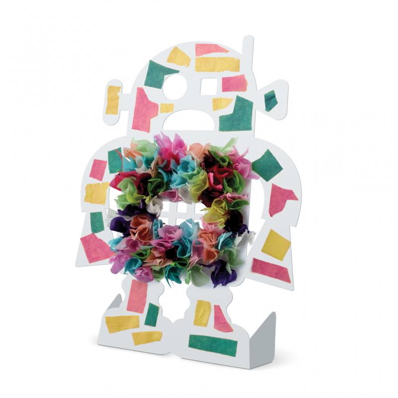 Jeder Blanko-Roboter ist 21,5 x 28 cm groß und lässt sich stehend aufstellen. So werden die fertigen Kunstwerke zu echten Hinguckern im Klassenzimmer, auf Ausstellungen oder im Kinderzimmer. Mit Farben, Stiften, Papier, Collagematerial oder sogar Zahnrädern können individuelle Roboter-Charaktere entstehen – ganz nach Lust und Laune.