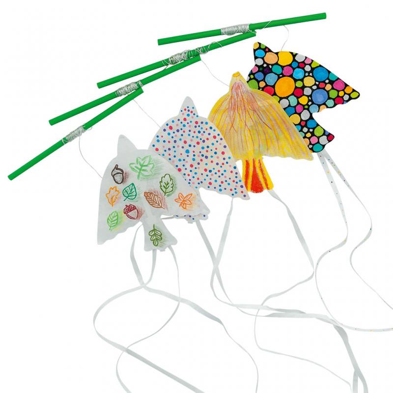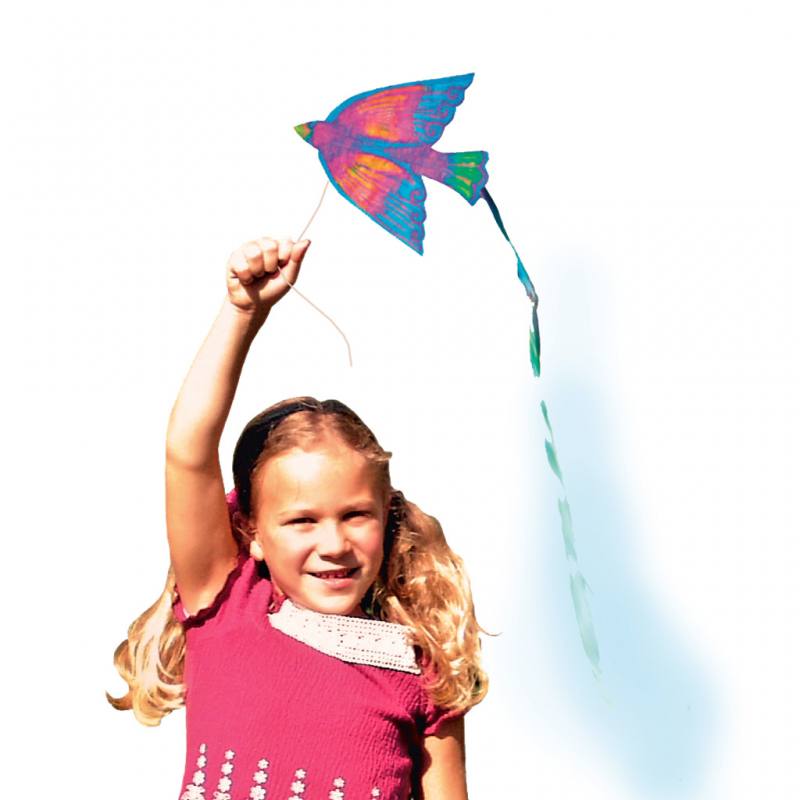 Mit den 32 Vogeldrachen zum Selbstgestalten verbinden sich Kunst und Naturwissenschaft auf spielerische Weise. Die ca. 15 x 18 cm großen Papierdrachen in Vogel-Form laden Kinder dazu ein, ihre eigenen Flugobjekte individuell zu bemalen – ideal mit Wachsmalkreide, AquaTint oder Filzstiften.