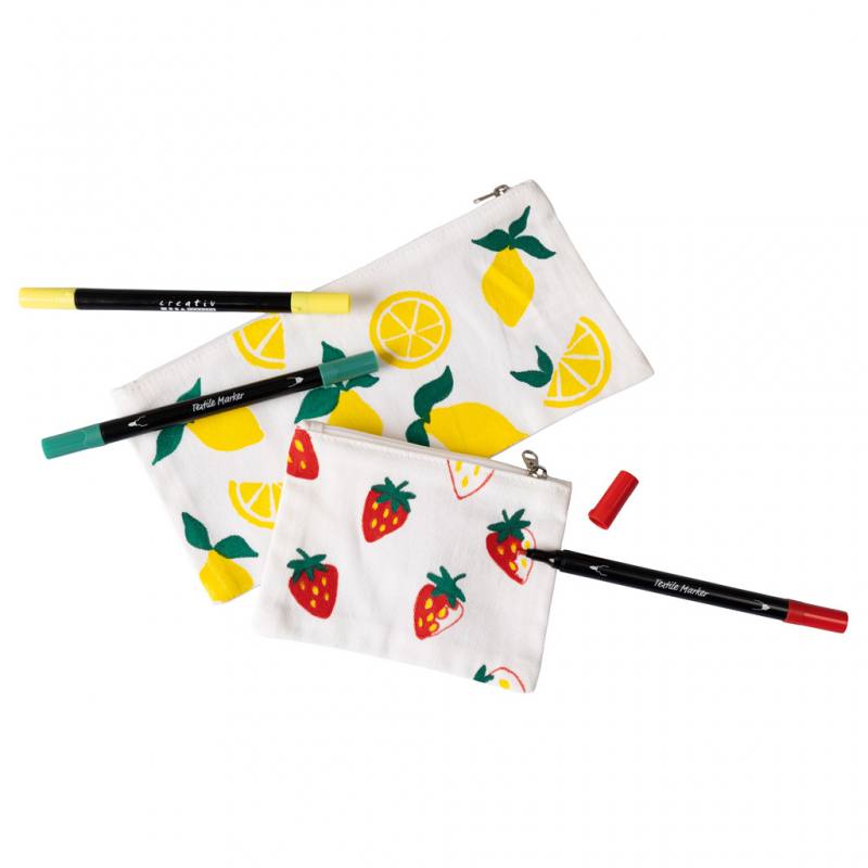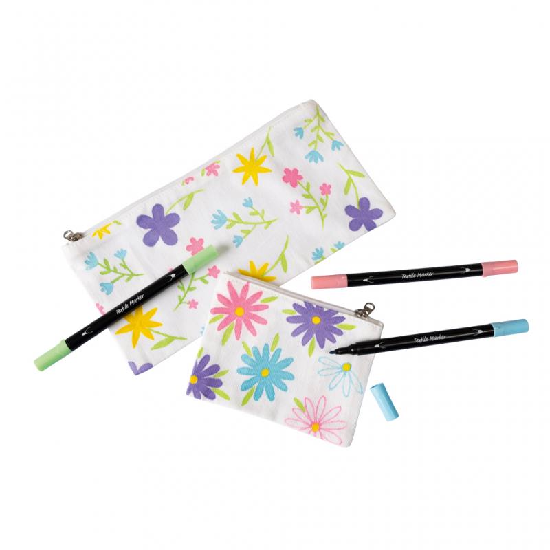 Wie wäre es, einfache Stoffe in echte Kunstwerke zu verwandeln? Mit den Textilmarkern mit Doppelspitze gelingt das im Handumdrehen. Jeder Textilmarker liegt gut in der Hand und bringt Farbe auf Taschen, T-Shirts oder Stoffbeutel.