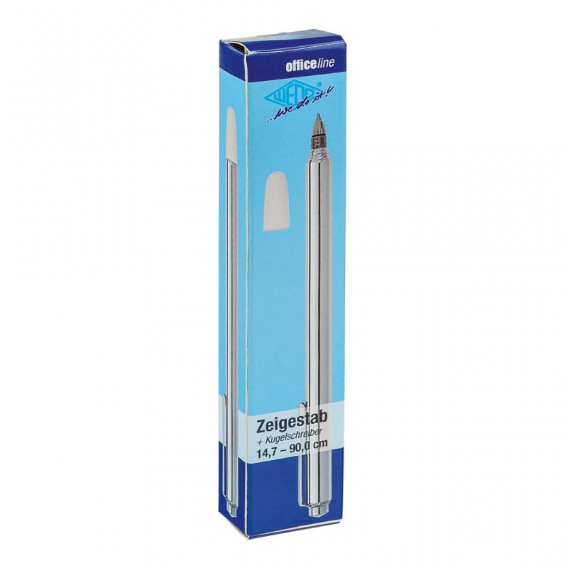 Der Teleskopzeigestab ist ausziehbar bis 90 cm mit Ansteckclip.