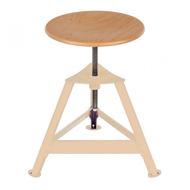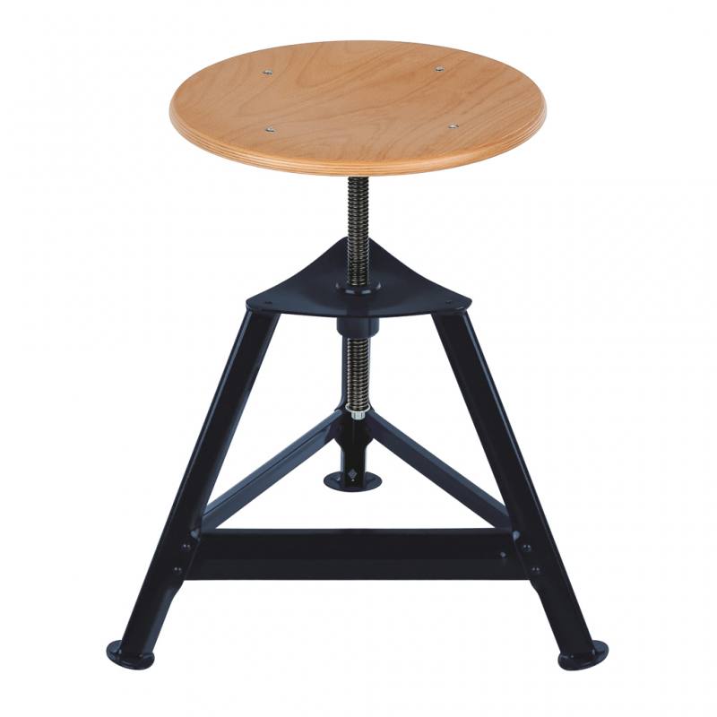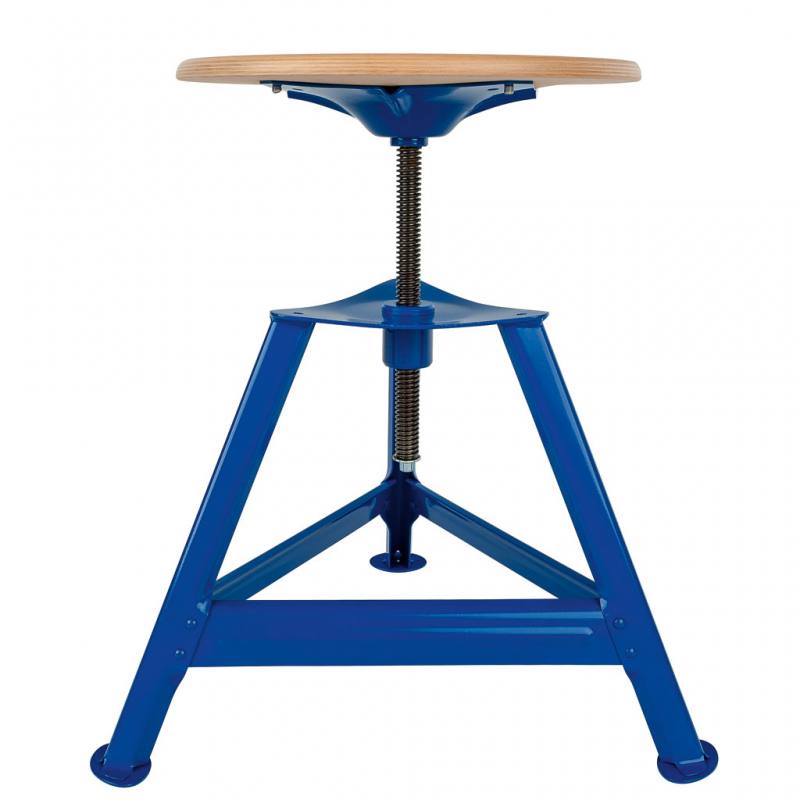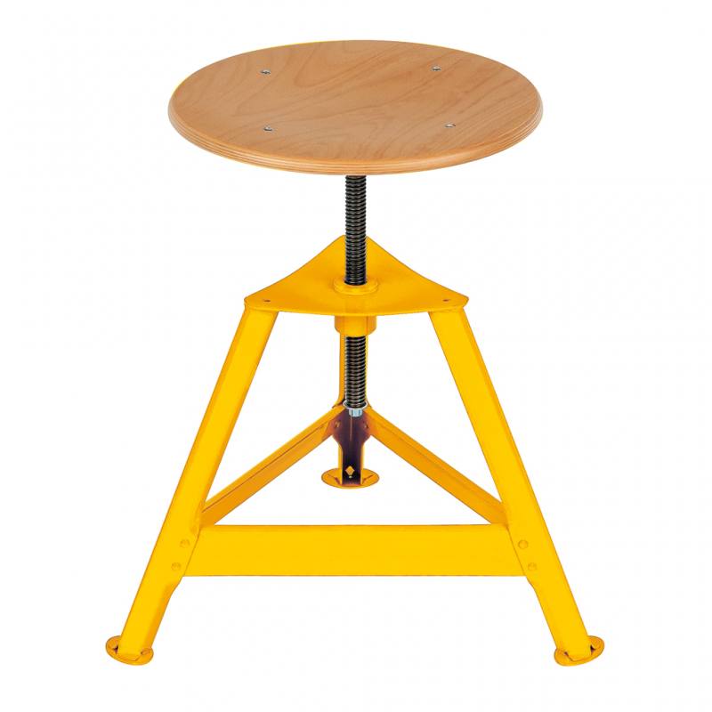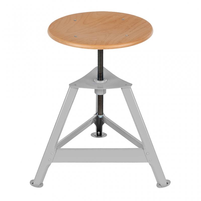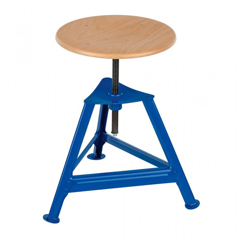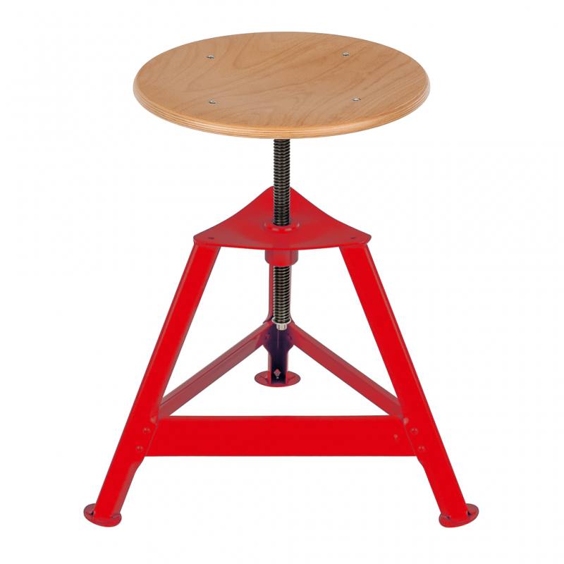 Wo täglich gesägt, gefeilt und gehämmert wird, muss das Mobiliar einiges aushalten. Der Bandstahlhocker ist genau dafür gemacht. Mit seiner robusten Konstruktion aus geformtem Stahlblech und einem stabilen Holzsitz bietet er eine langlebige und sichere Sitzgelegenheit für Werkraum, Atelier oder Unterrichtsraum.