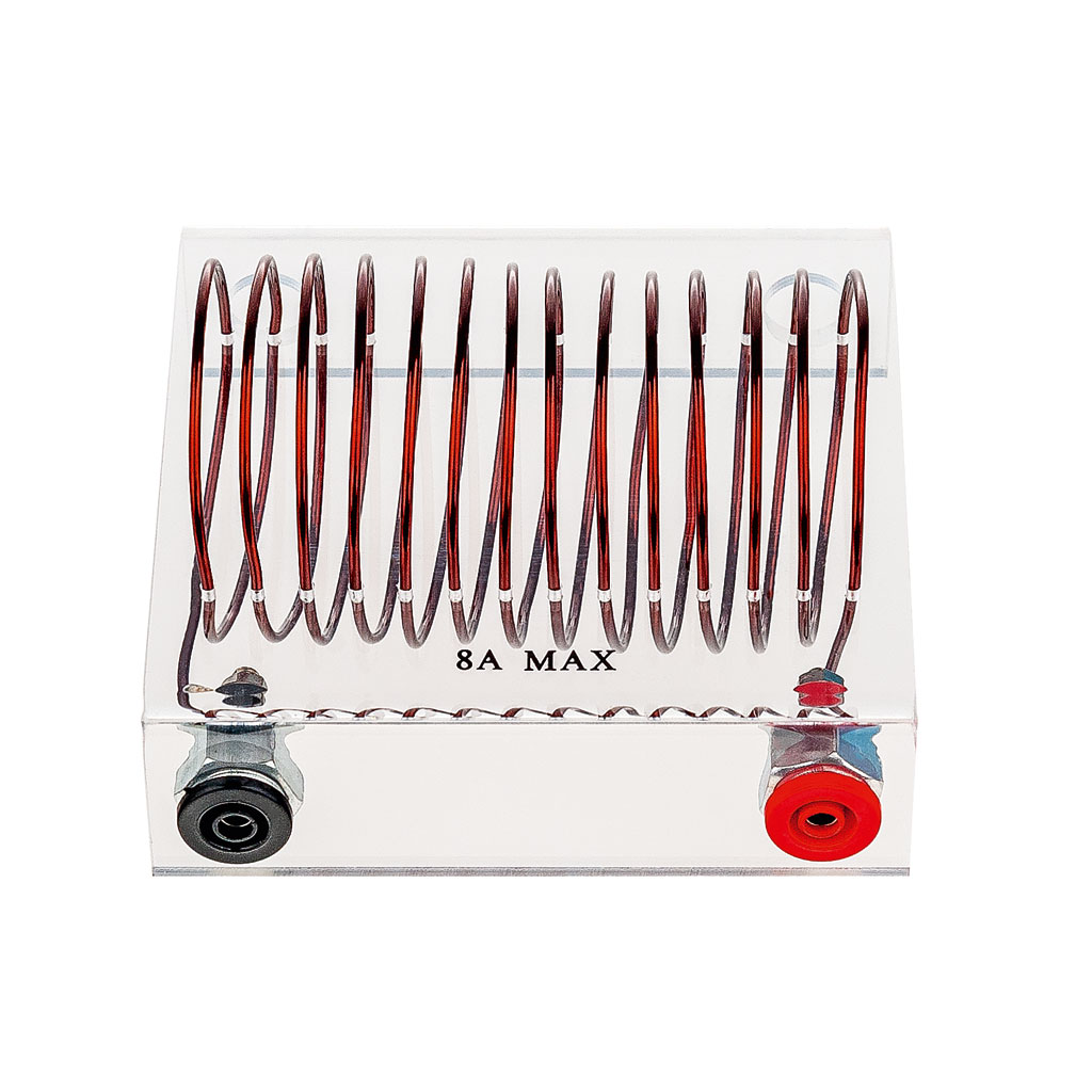 Dank der stabilen Montage auf einem Sockel steht die Spule für Feldlinien sicher und lässt sich einfach handhaben. Die integrierten 4-mm-Buchsen ermöglichen eine unkomplizierte Verbindung mit anderen Experimentiergeräten. Mit einer Stromaufnahme von ca. 8 A ist sie leistungsstark und bestens für Demonstrationen in Schulen, Universitäten oder Laboren geeignet.