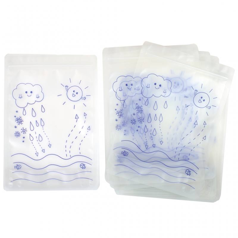 Die farbenfrohen Illustrationen auf den Beuteln können mit Filzstiften oder Permanentmarkern bemalt werden, bevor das Experiment Wasserkreislauf beginnt. Sobald das Wasser durch Sonneneinstrahlung verdunstet, bilden sich kleine Tröpfchen an der Tütenwand – ein faszinierender Moment, der zeigt, wie Wetterphänomene in der Natur entstehen. Ein leichtes Antippen der Tüte simuliert sogar den Regen.
