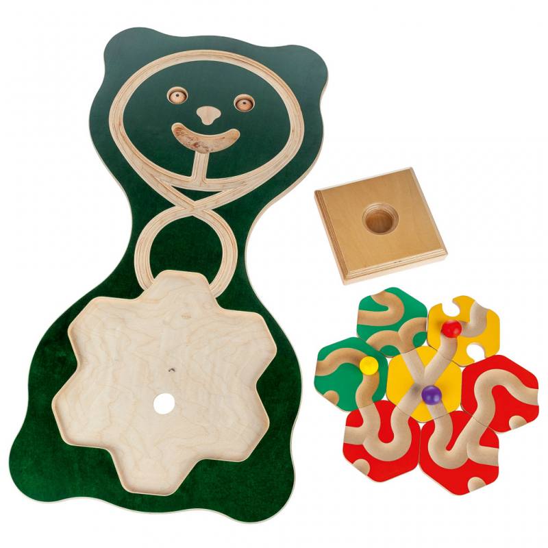 Der Puzzle-Bär bietet den Spielern die Möglichkeit, eigene Bahnverläufe mit verschiedenen Schwierigkeitsgraden zu puzzeln. Der Spieler ist gezwungen, das schnelle Rollen der Murmel durch fein abgestufte Bewegungen vor dem Eintritt in den Puzzlebereich abzubremsen. Nur so ist der schwierige Parcours zu meistern. Trainiert werden die Feinmotorik, Koordination, Zusammenspiel Auge und Hand sowie der Gleichgewichtssinn.