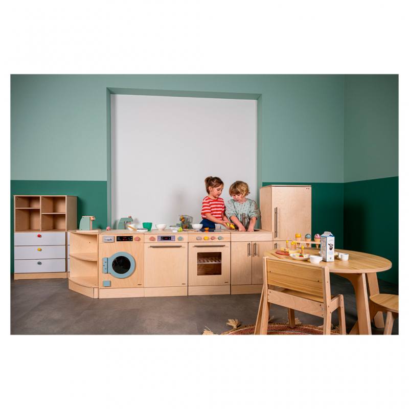 Vervollständigen Sie die Kinderküche mit dem Educo® Küchenschrank, der ideal für die Aufbewahrung aller Küchenutensilien geeignet ist. Mit seinen abgerundeten Ecken eignet sich der Schrank hervorragend als Abschlusselement für jede Küchenzeile und fügt sich harmonisch in das Gesamtkonzept ein.