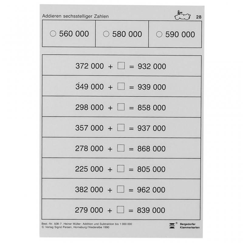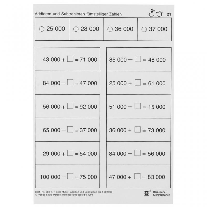 Bergedorfer® Klammerkarten Addition und Subtraktion bis 1.000.000 und darüber