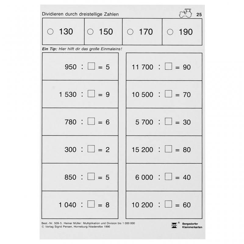 Bergedorfer® Klammerkarten Multiplikation und Division bis 1.000.000 und darüber