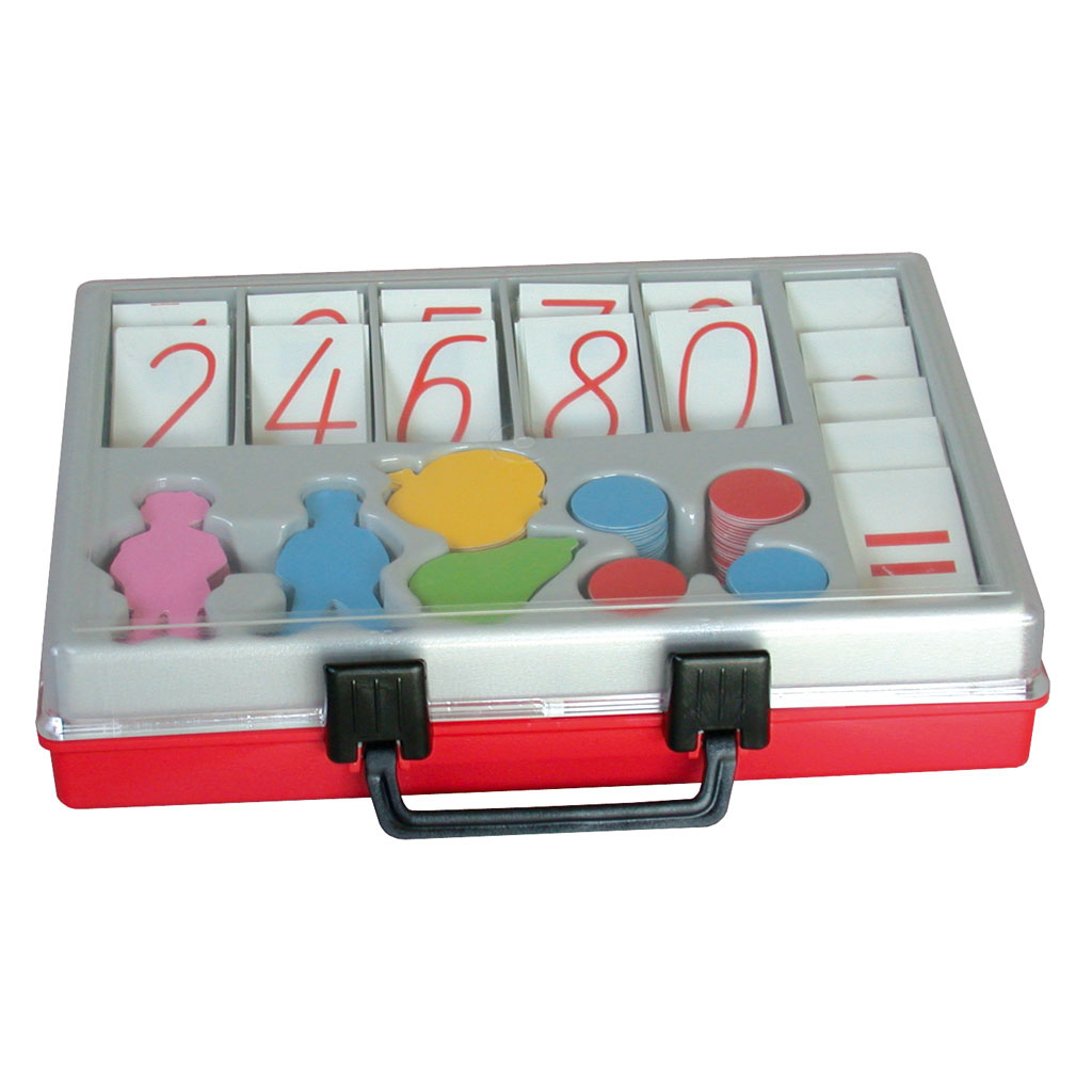Die Lieferung erfolgt in einem praktischen Kunststoffkoffer, der nicht nur die Aufbewahrung und den Transport erleichtert, sondern auch dafür sorgt, dass die Teile sicher und geordnet bleiben. Der Kombisatz ist besonders wertvoll für den Anfangsunterricht in der Grundschule, da er eine einfache und vielseitige Möglichkeit bietet, Zählübungen, Additionen und Subtraktionen im Zahlenraum bis 20 darzustellen und zu üben.