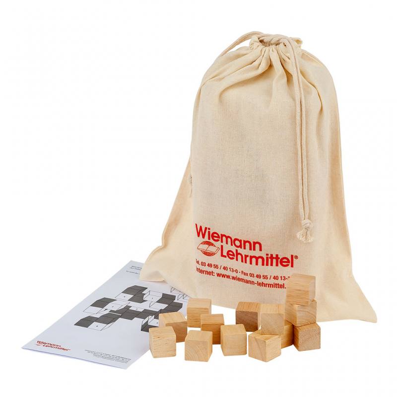 Soma-Würfel Bausatz in Stoffbeutel, inkl. Anleitung, naturfarben