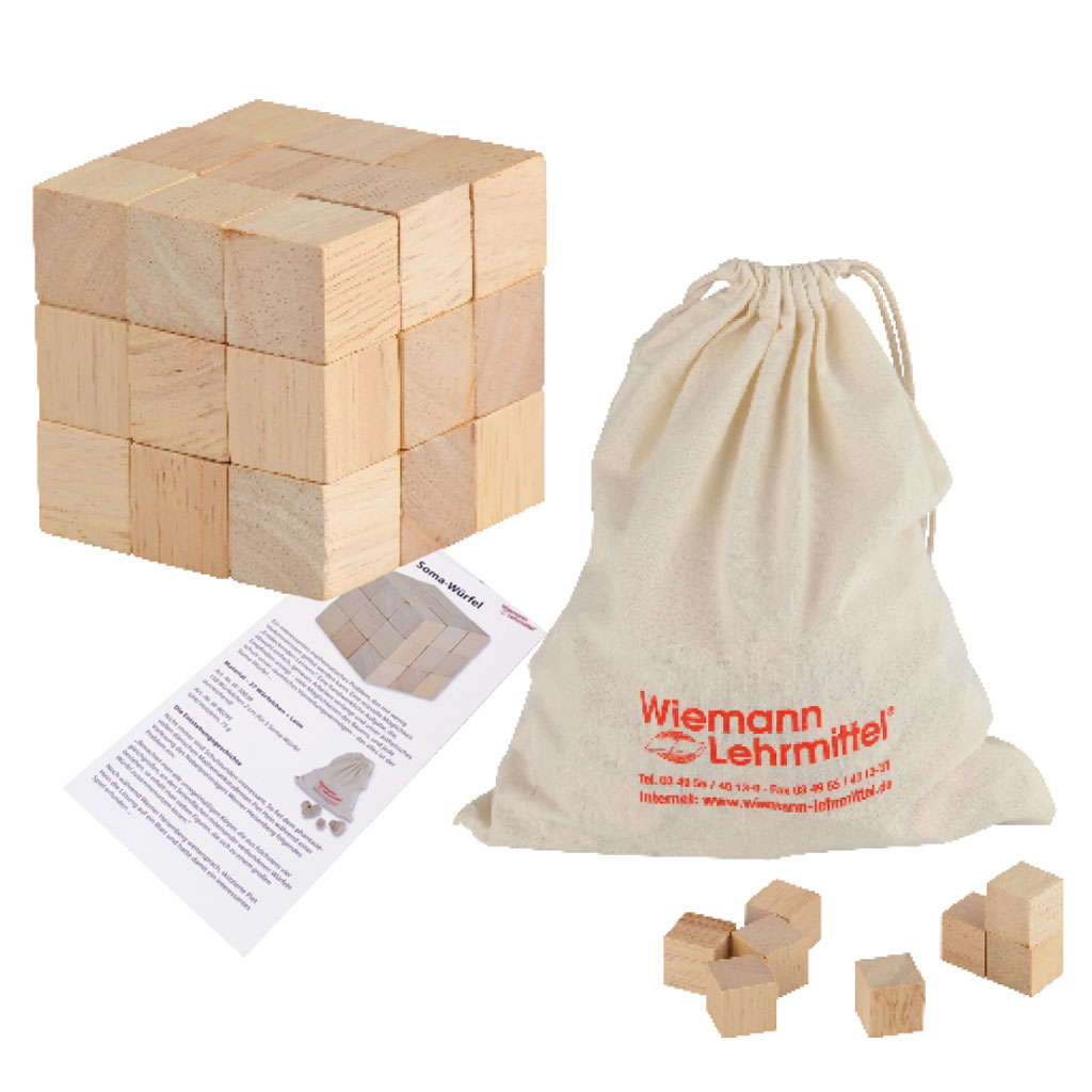 Mit diesem Bausatz lassen sich fünf komplette Soma Würfel selber bauen! Das Set enthält 150 Holzwürfel, aus denen die typischen sieben Bauelemente jedes Soma Würfels verleimt werden können. Beim Zusammensetzen der Bausteine wird nicht nur die Feinmotorik geschult, sondern auch das räumliche Vorstellungsvermögen spielerisch gefördert.