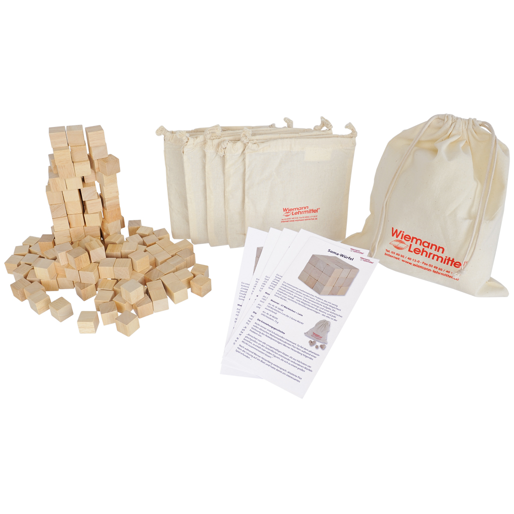 Mit diesem Set können Schüler bis zu fünf komplette Soma Würfel selber bauen und anschließend für spannende Knobelaufgaben nutzen. Die 150 enthaltenen Holzwürfel ermöglichen es, die typischen sieben Bauelemente jedes Soma Würfels eigenständig zu verleimen und zusammenzusetzen. Dabei werden nicht nur handwerkliche Fähigkeiten gefördert, sondern auch das räumliche Denken spielerisch geschult.
