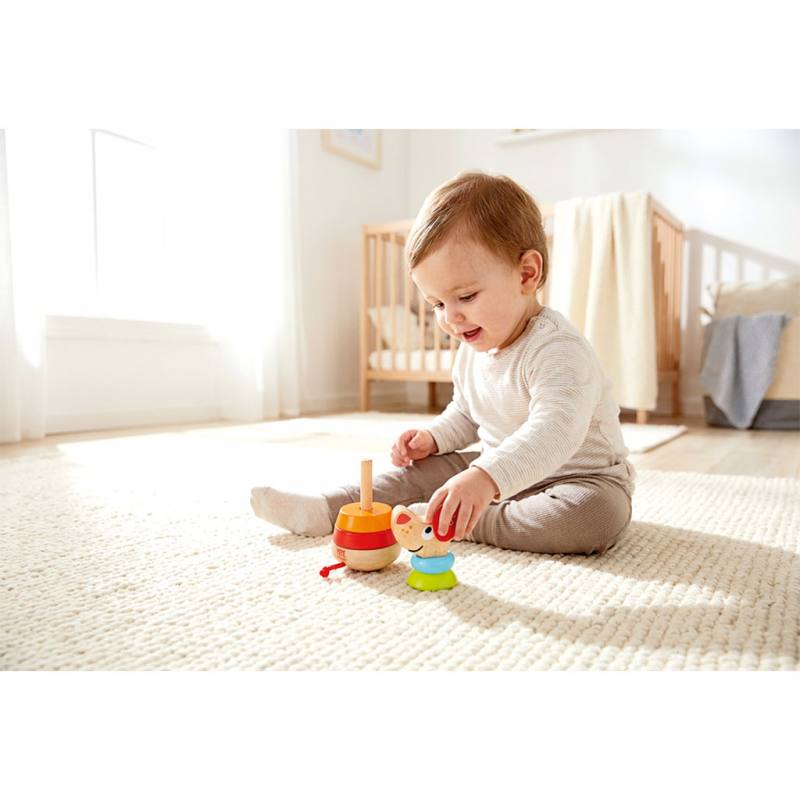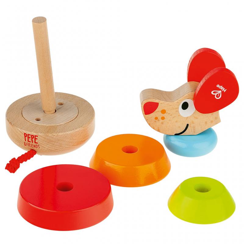 Beim Spielen mit Stapelhund Pepe lernen Kinder, verschiedene Formen und Farben zu unterscheiden und diese gezielt aufeinanderzusetzen. Sie probieren aus, welche Reihenfolge stabil ist, und entwickeln dabei ganz natürlich ein Gefühl für Balance und Geschicklichkeit. Das Stapeln wird so zu einer spannenden Herausforderung, die immer wieder neue Erfolgserlebnisse bietet.