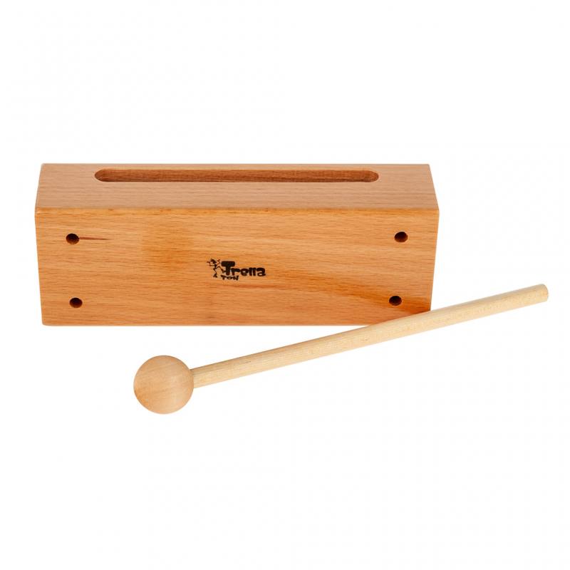 Die hochwertige Holz-Blocktrommel ist ein Perkussionsinstrument, das mit seinen beidseitigen Tonschlitzen den charakteristischen Klang erzeugt. Die Blocktrommel misst 16,5 x 4 x 6 cm und ist aus hellem Hartholz gefertigt, was für eine edle Optik sorgt und eine robuste und langlebige Konstruktion gewährleistet.