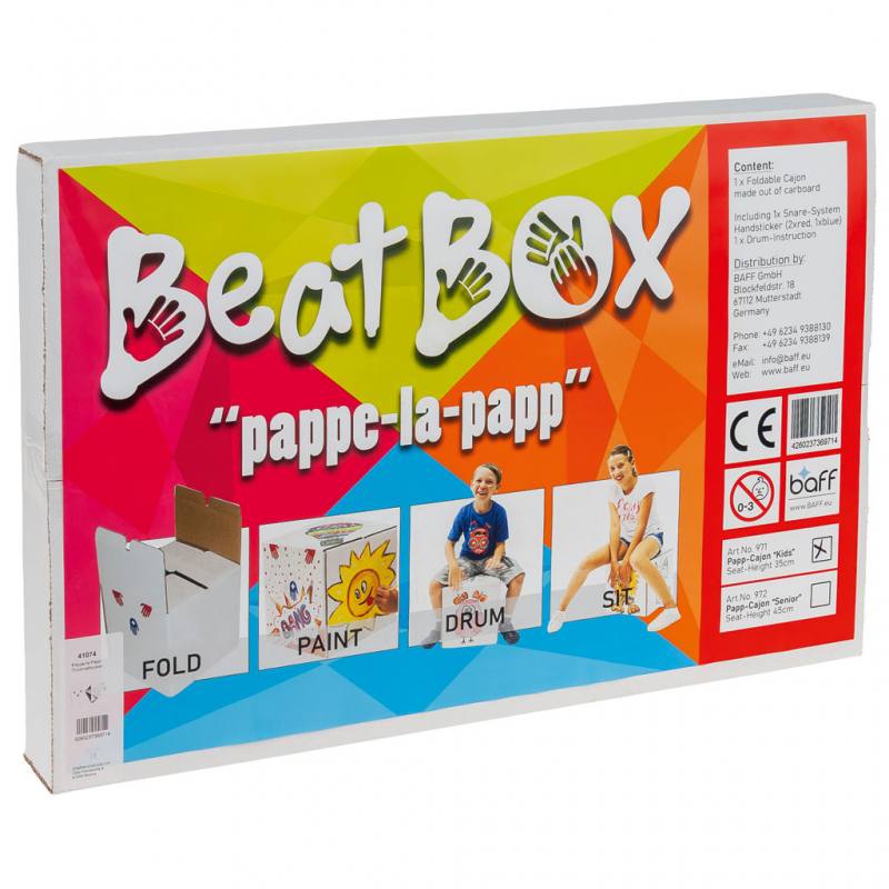 Der Trommelhocker aus Pappe ist das ideale Einstiegs-Musikinstrument für Kindergarten, Schule oder zu Hause. Er besteht aus stabilem Karton und besitzt die Maße von 35 x 35 x 35 cm, sodass neben Kindern auch Erwachsene auf ihm Platz nehmen können. So wird das Trommeln zu einem Spaß für Groß und Klein. Durch ein eingebautes Snaresystem besitzt die Kistentrommel einen perfekten Sound, der typisch für Cajons ist und den Exemplaren aus Holz in nichts nachsteht.