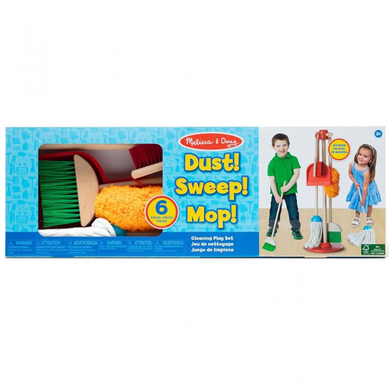 Mit dem 6-teiligen Putzset von Melissa & Doug können Kinder Mama und Papa nacheifern und spielerisch den Umgang mit Haushaltsutensilien üben. Das Putzset umfasst einen stabilen Holzständer mit Besen, Mopp, Staubwedel, Kehrschaufel und Handbesen – alles in kindgerechter Größe und farbenfroh gestaltet.