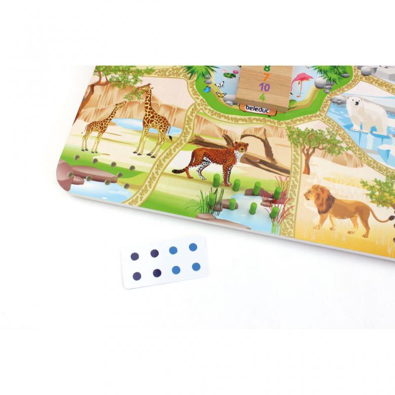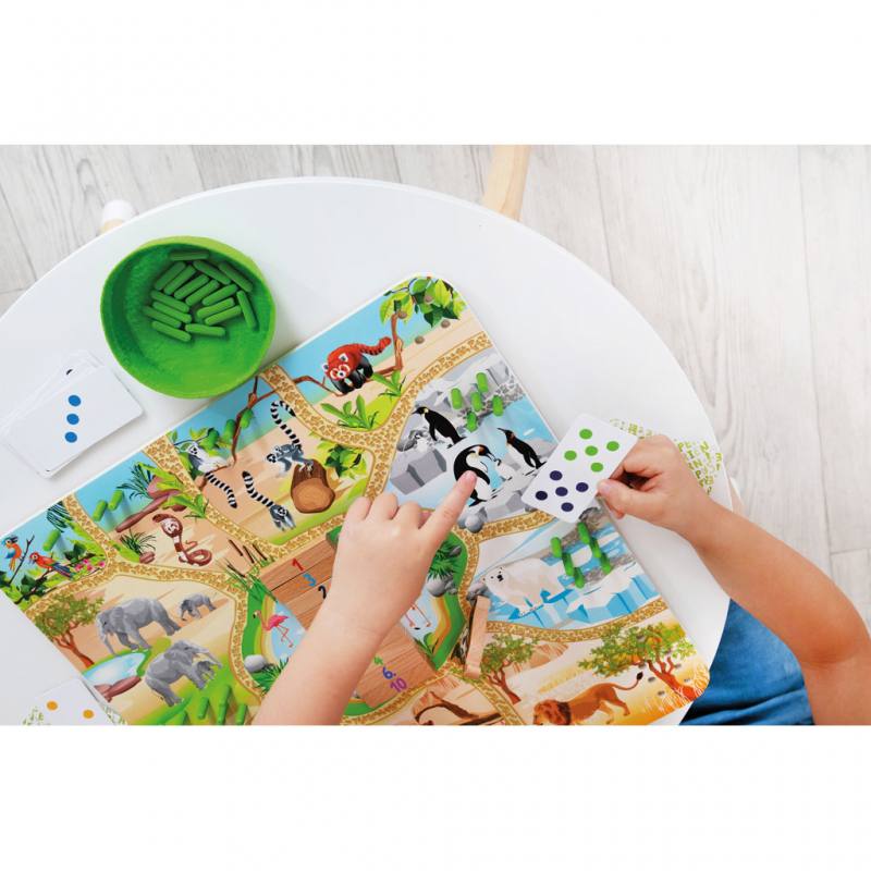 Das Spiel zum Zählen lernen Joe’s Zoo ist ein kooperatives Lernspiel, das Kindern ab 4 Jahren auf spielerische Weise hilft, mathematische und sprachliche Kompetenzen zu entwickeln. In diesem liebevoll gestalteten Spiel begleiten die Kinder Joe und seinen treuen Dackel DapDap bei ihrer wichtigen Aufgabe: Die Tiere des Zoos müssen gefüttert und die Wegplatten sortiert werden. Dabei lernen die Spieler das Zählen von 1 bis 10 und das Erkennen erster Mengen.