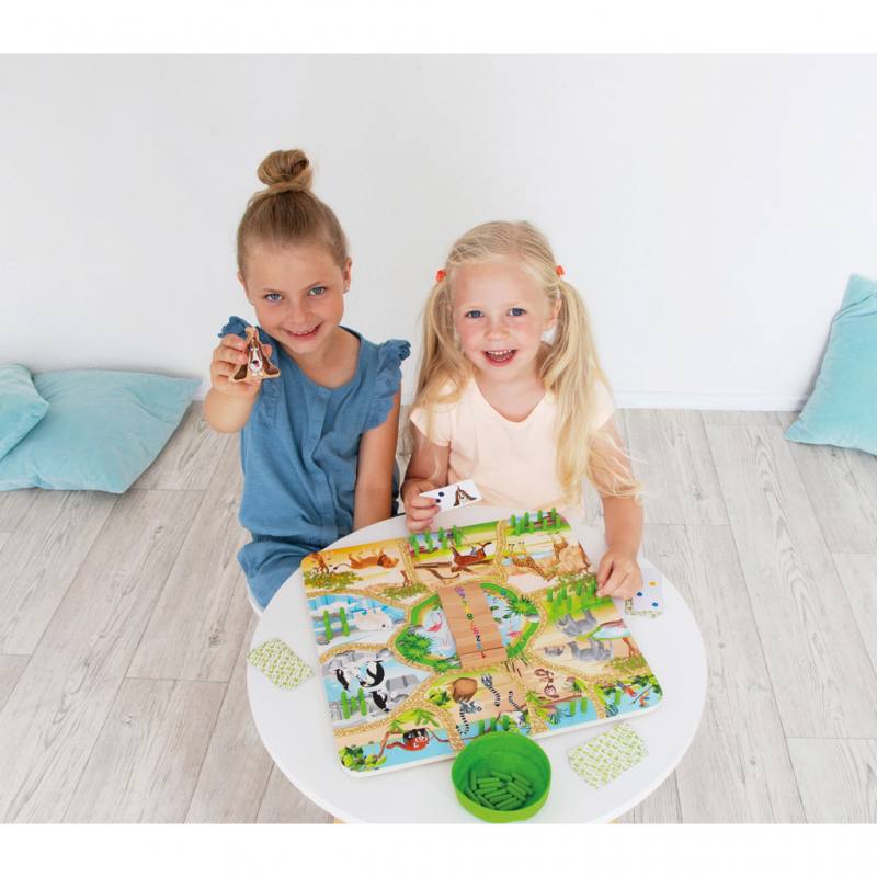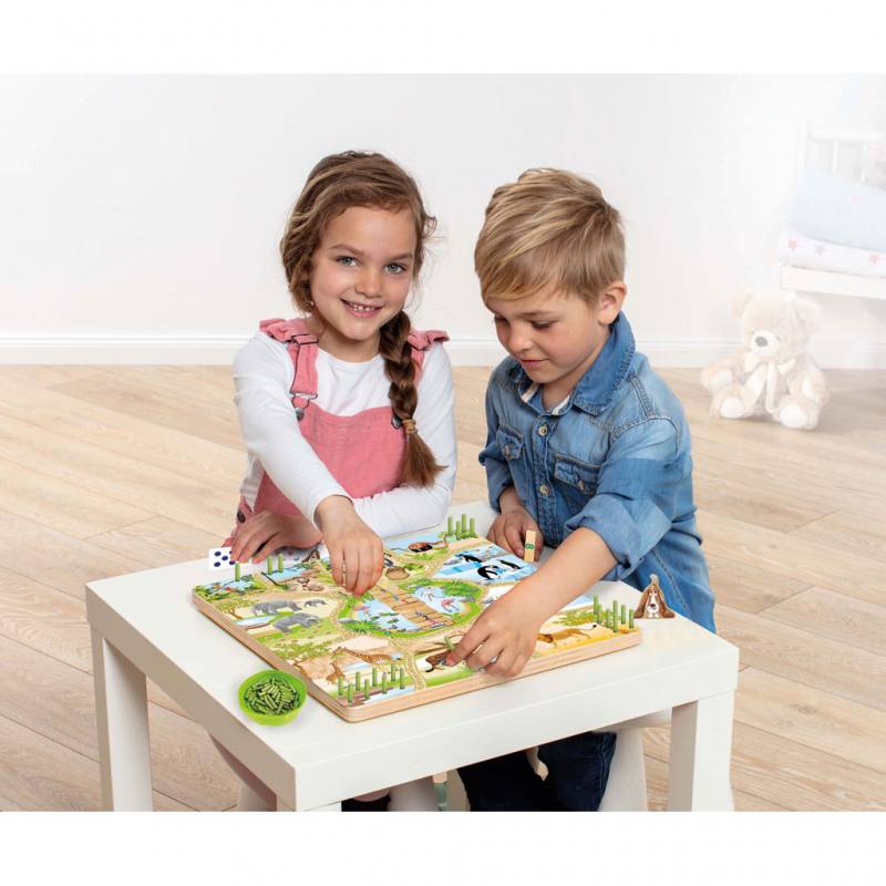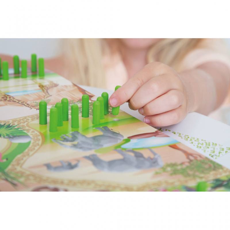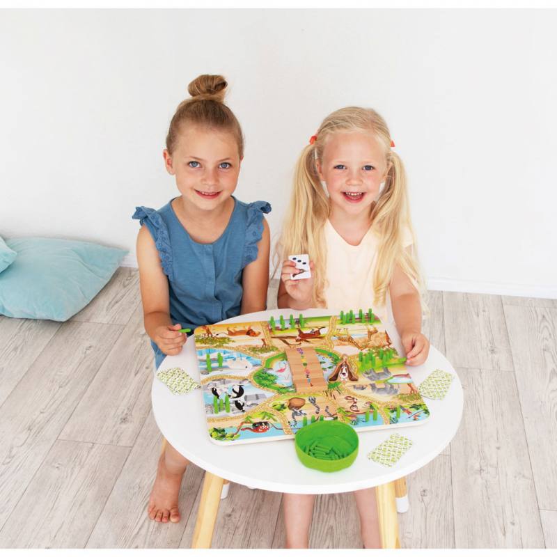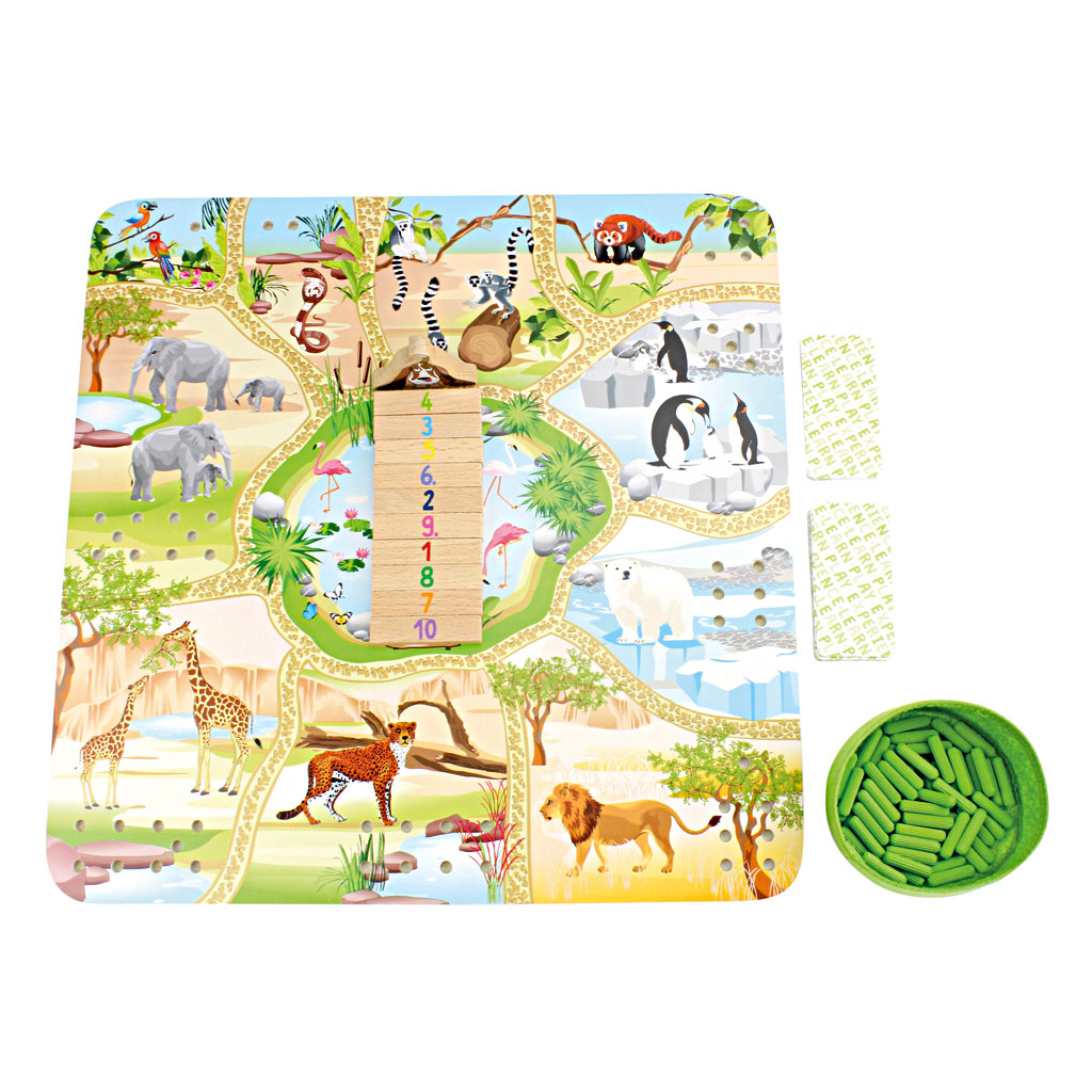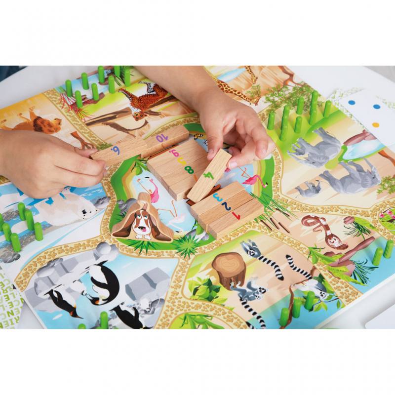 Das Spielziel ist es, entweder alle Tiere zu füttern oder alle Wegplatten in die richtige Reihenfolge zu bringen, bevor die ersten Zoobesucher eintreffen. Mit den Zahlenkarten können die Kinder die Futterstäbe verteilen oder die Wegplatten tauschen – Zusammenarbeit und Kommunikation sind hier der Schlüssel zum Erfolg! So fördert das Spiel nicht nur mathematische, sondern auch sprachliche Fähigkeiten und stärkt das gemeinsame Spielen.