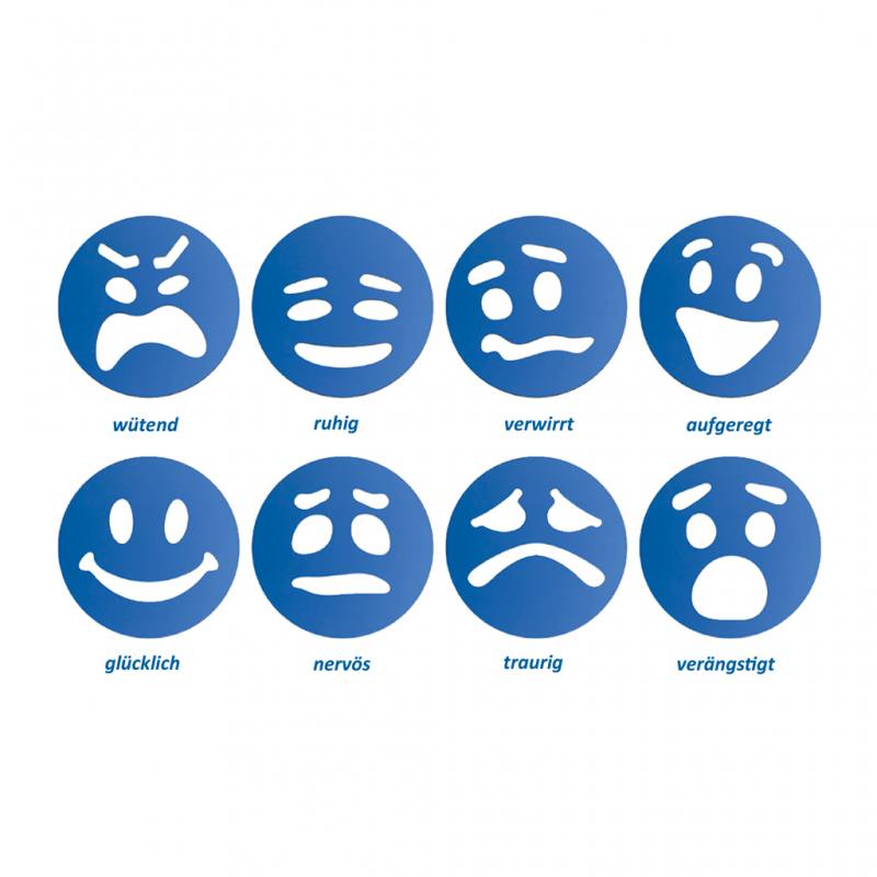 - 8 Schablonen mit verschiedenen Emotionen