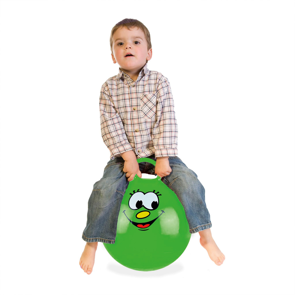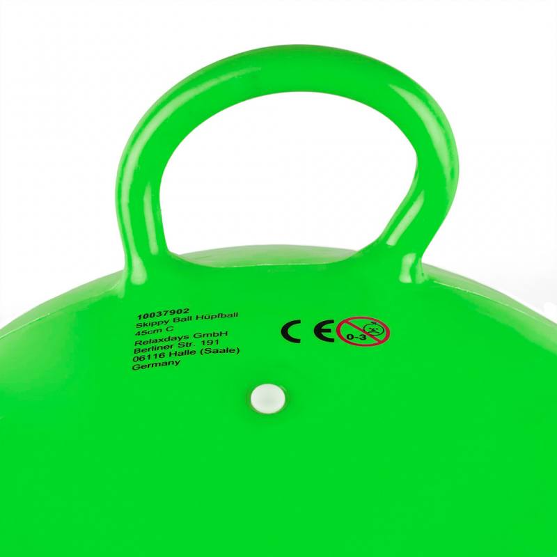 Dank des runden Griffs auf der Oberseite des Hüpfballs haben die Kleinen einen sicheren Halt beim Springen. Der Ball hat einen Durchmesser von etwa 40 cm und besteht aus robustem PVC, das bis zu 150 kg belastbar ist. Er lässt sich ganz einfach mit einer Hand- oder Fußpumpe aufpusten und ist sofort einsatzbereit.